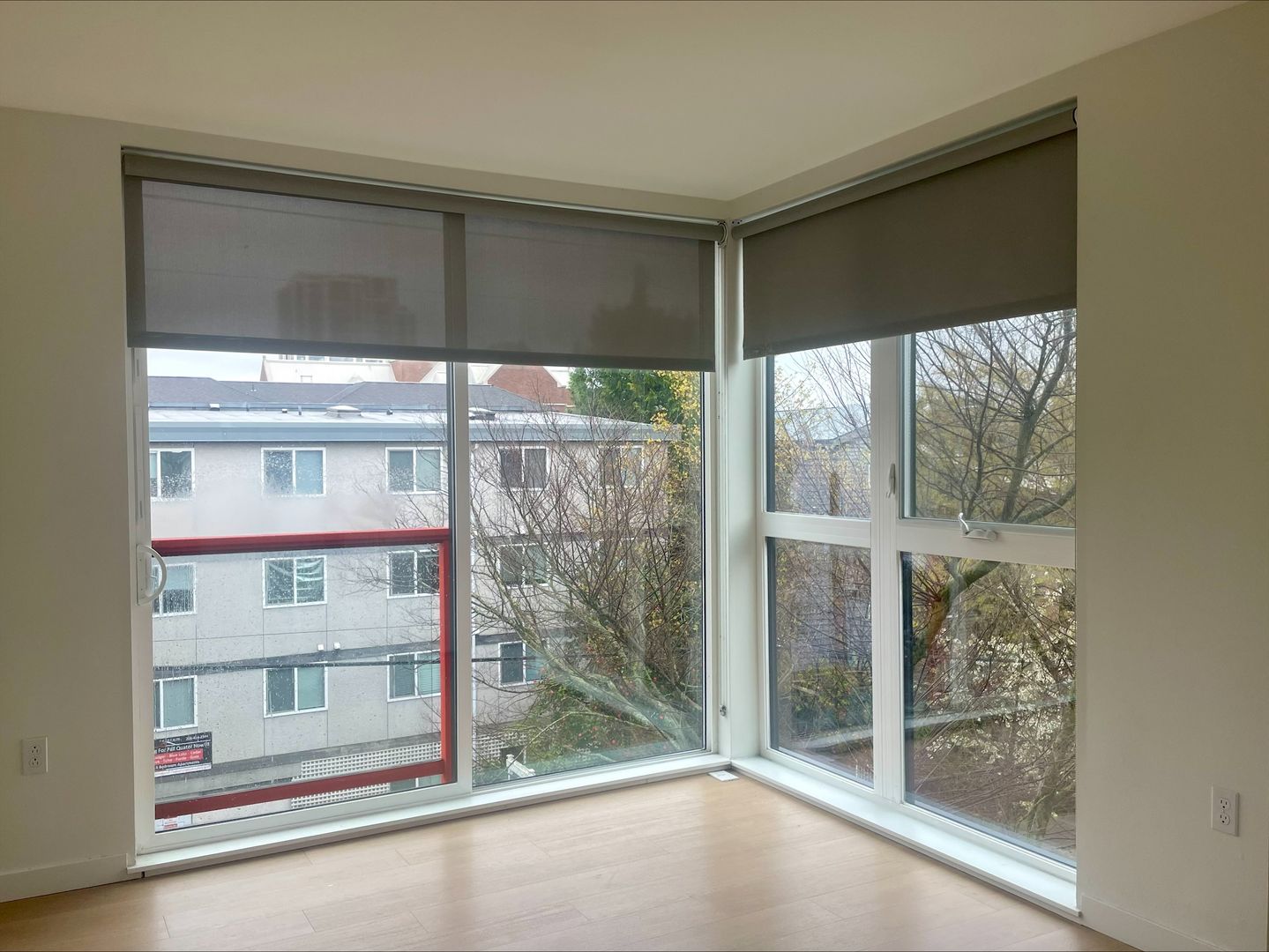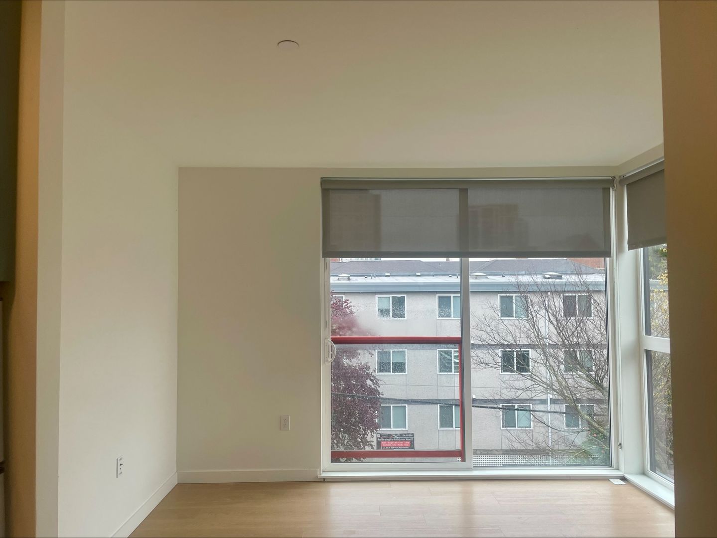 Unit 403 features floor-to-ceiling windows and a Juliet balcony that offers abundant natural light.